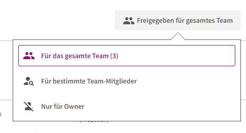 Bei der Erstellung eines neuen Formulars kann über drei Schaltflächen entschieden werden, ob das Formular „Nur für Owner“, „Für bestimmte Team-Mitglieder“ oder auch „Für das gesamte Team“ einsehbar sein soll. Über den Button rechts in der oberen Ecke können die Freigaben für ein bereits bestehendes Formular geändert werden.